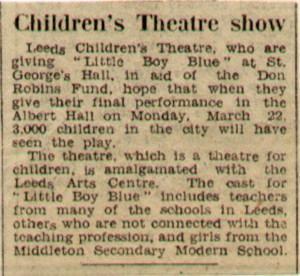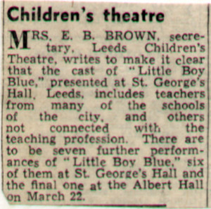 Leeds Arts Centre performed Little Boy Blue in March 1948.