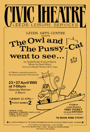 Leeds Arts Centre performed The Owl and the Pussy-Cat Went to See in April 1985.